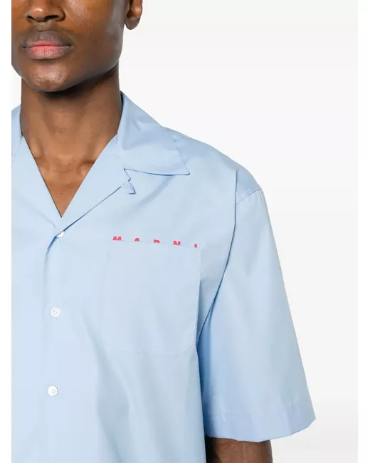 blu fiordaliso cotone trama popeline cuciture tono su tono colletto alla cubana maniche corte stampa con logo sul petto applicazione con logo sul petto orlo dritto chiusura frontale con bottoni