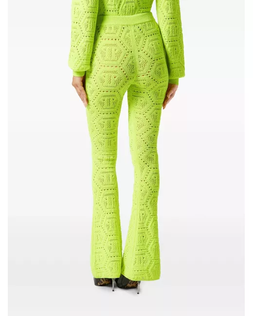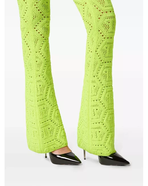 fluorescent yellow wool blend patterned intarsia knit perforated detailing slip-on style flared design