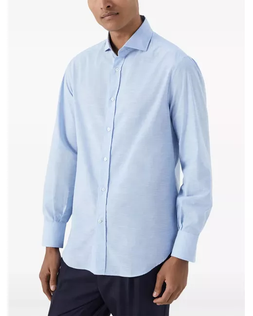 Camicia in cotone di Brunello Cucinelli. Modello con colletto alla francese, abbottonatura frontale, maniche lunghe, polsini stretti e orlo curvo.