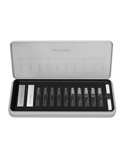 WHAT IT IS Introducing MIND GAMES, a fragrance debut that transports you to the crucial moments of competition in a test of character, skill, and intellect. MIND GAMES links the complex artistry best embodied by the strategy and brilliance of Chess with the innovative and hypnotic effects of perfumery. The result is an inaugural fragrance line that delivers a scent wardrobe of extreme olfactive signatures. This full offering of the MIND GAMES Artisan collection includes 2 reusable solid zamak travel cases and 10 unisex Extrait de Parfum atomizers, housed in an elegant leather-like box. Made in USA. 10-PIECE SET INCLUDES Grand Master Extrait de Parfum, 0.3 oz. GardezExtrait de Parfum, 0.3 oz. Scholar's MateExtrait de Parfum, 0.3 oz. Double AttackExtrait de Parfum, 0.3 oz. J'AdoubeExtrait de Parfum, 0.3 oz. CheckmateExtrait de Parfum, 0.3 oz. CaïssaExtrait de Parfum, 0.3 oz. As-Suli's DiamondExtrait de Parfum, 0.3 oz. BlockadeExtrait de Parfum, 0.3 oz. CastlingExtrait de Parfum, 0.3 oz. Fragrances - Mind Games Fragrance > Mind Games > Saks Fifth Avenue > Barneys. Mind Games.