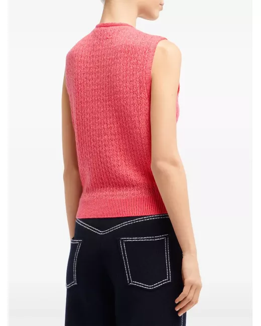 coral pink cashmere pointelle knit ribbed V-neck sleeveless ribbed cuffs and hem straight hem