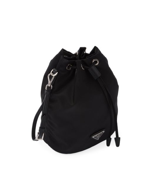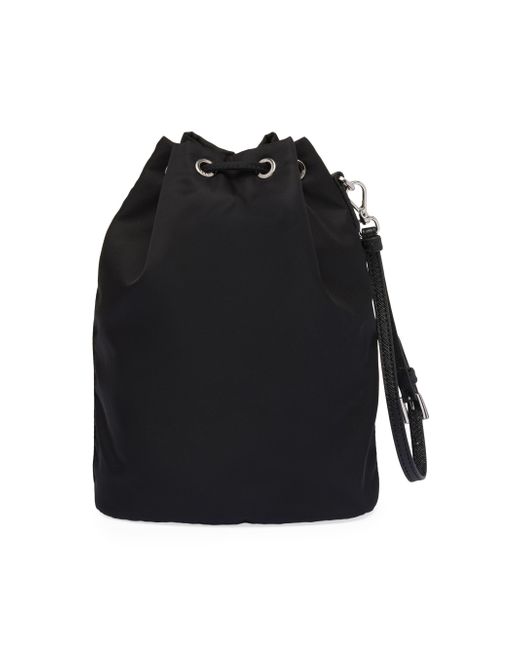 Made of Prada's innovative Re-Nylon fabric produced from recycled plastic materials collected in the ocean, this drawstring pouch stands out for its practical attitude highlighted by its removable leather wristlet. Drawstring closure Enameled metal triangle logo Removable leather wristlet Re-Nylon lining Imported SIZE 15.5 W x 23 H x 10 L (cm) / 6'' W x 9'' H x 4'' L. Lsd Rtw - Prada Rtw > Prada > Saks Fifth Avenue > Barneys. Prada. Color: Black.