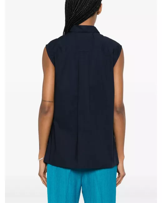 blu notte cotone biologico trama popeline dettaglio con piega posteriore colletto classico senza maniche orlo dritto design senza fodera abbottonatura frontale