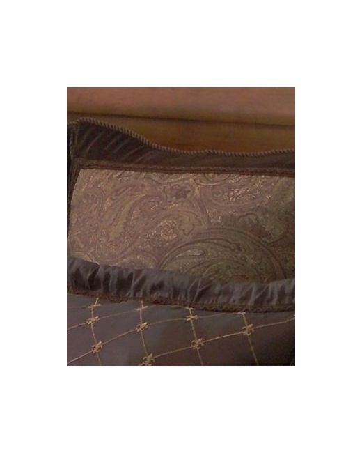 The Buta Comforter Set instantly transforms your bedroom into an extravagant haven. Brown paisley is paired with an elegant diamond trellis pattern in tones of purple and gold. Shams feature corded seams, mitered corners and flanged borders. Embellished decorative and bolster pillows enhance this beautiful set that contains everything you need for this lush designer look.