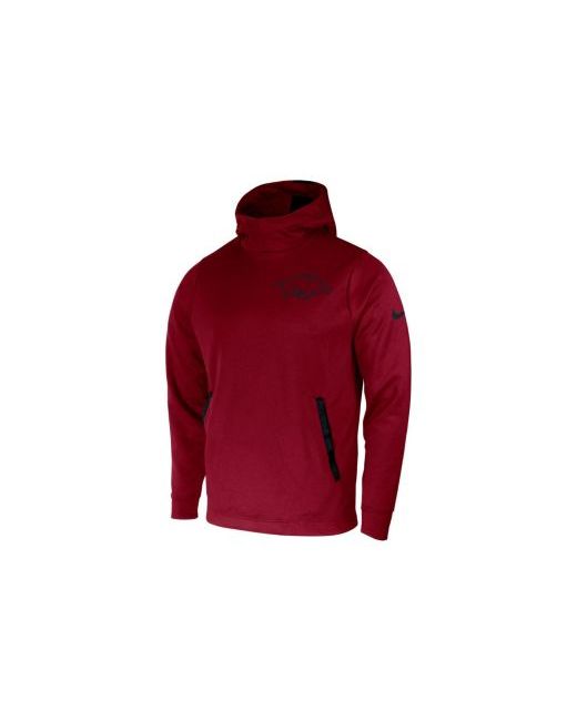 Double up your show of Arkansas Razorbacks fandom with this 2-Hit pullover hoodie from Nike. It features the official Arkansas Razorbacks logo printed on the front and the team name displayed vertically on the back. The scuba hood with a contrasting stripe also provides more coverage, while Nike Therma fabric keeps you naturally warm.
