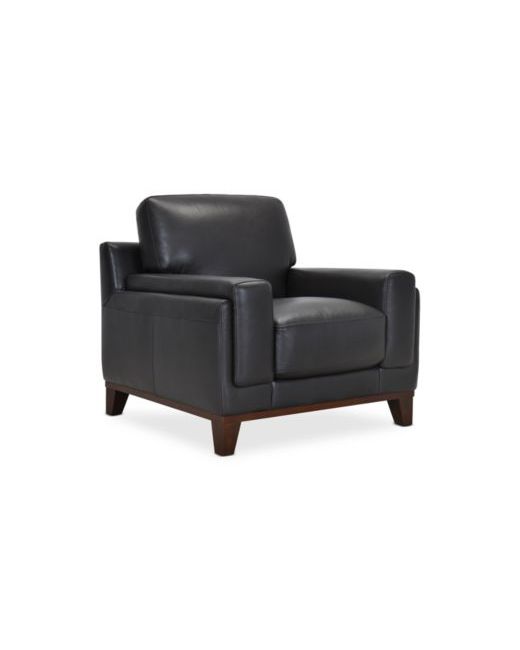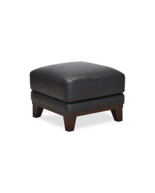 Instantly enhance your living space in both appearance and comfort with this handsome ottoman. An oversized cushion draped in smooth leather tops of the piece while an exposed wood base in a dark brown finish offers a visual of timeless style.