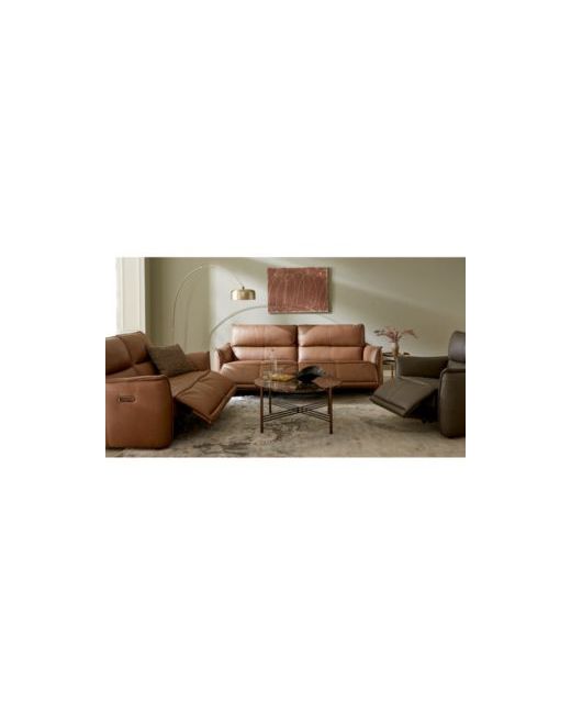 Swooping arms and extra large cushions draped in smooth leather and defined by luggage stitching reveal the fresh, modern styling of this handsome sofa. Dense foam provides a supportive feel while dual power recliners make it a breeze for you and others to find the perfect angle of comfort.