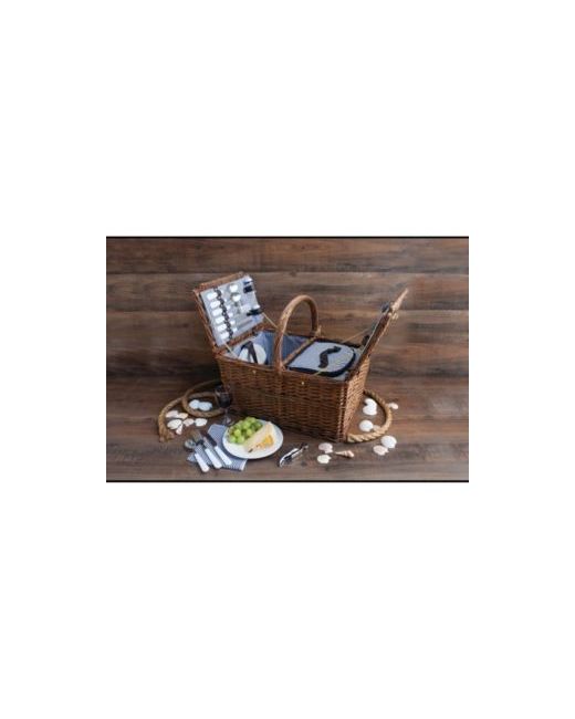 Enjoy refined al fresco dining with our woven wicker picnic basket. Two insulated compartments keep your picnic fare a perfect temperature while the sturdy handle makes it easy to carry.