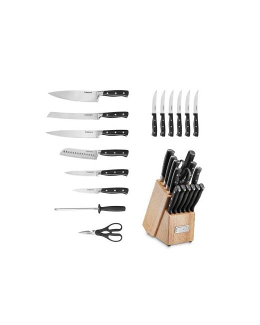 Cuisinart Classic Forged Triple Rivet Cutlery possesses superior high-carbonstainless steel blades for precision and accuracy. Packaged in a 15-piece blockset and open stock, these extraordinary knives have tapered ground bladesthat narrow gradually to an extremely sharp, fine edge. Constructed for perfectstability and control, the knives are designed with an extra-wide forged safetybolster and stainless steel rivets securing the blade to the comfortable handle.