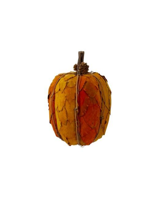 This adorable pumpkin would be the perfect addition to your fall and Thanksgiving decor this year. Authentic pine cones and twigs adorn the top of the pumpkin depicting the stem and leaves. Perfect to use as a centerpiece or as an accent piece.