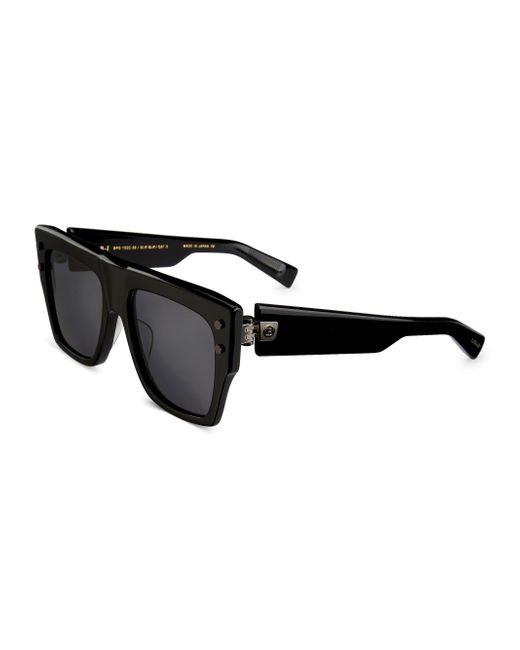 Balmain's B-I sunglasses feature 56MM square frames with titanium studs at the temples. This pair is finished with a goldtone logo at the temples. 100% UV protection Gradient lenses Includes case and cleaning cloth Titanium/acetate Made in Japan SIZE 56mm lens width 18mm bridge width 145mm temple length ABOUT THE BRAND In 1945, founder Pierre Balmain made his well-received debut of opulent, ultra-feminine designs. Known today for its iconic blazers, impeccably constructed dresses and signature fragrances, the brand continues its dedication to masterful tailoring and elegance under the helm of Creative Director Olivier Rousteing. Soft Accessories - Sunglasses > Balmain > Saks Fifth Avenue > Barneys. Balmain. Color: Black Dark Grey.