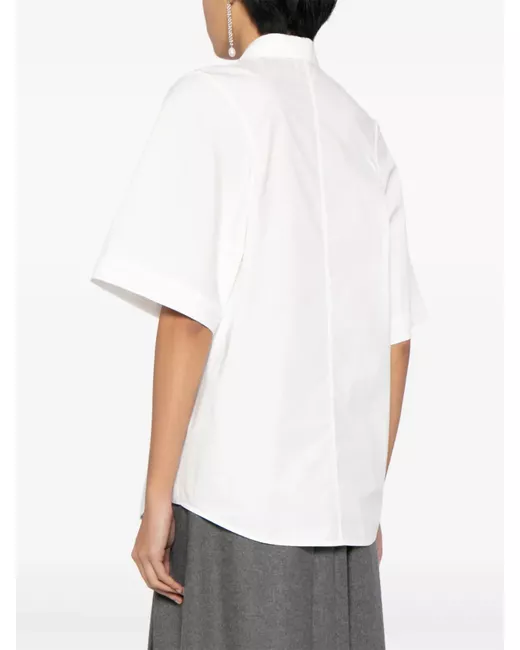 bianco cotone trama popeline colletto oversize chiusura frontale con bottoni maniche corte orlo curvo