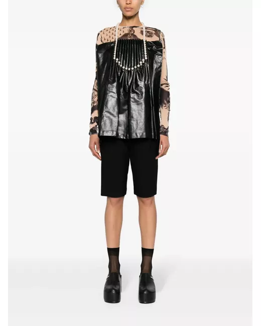 nero pelle cruelty-free finitura lucida gonna plissettata dettaglio con perle finte design asimmetrico scollo quadrato senza maniche apertura sul retro orlo asimmetrico