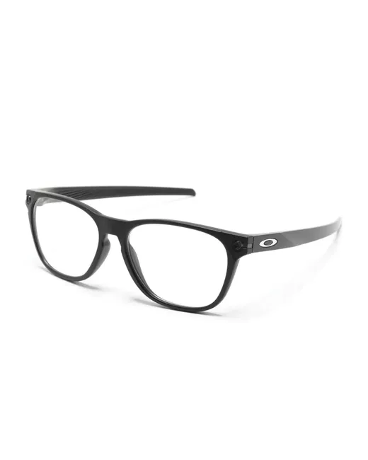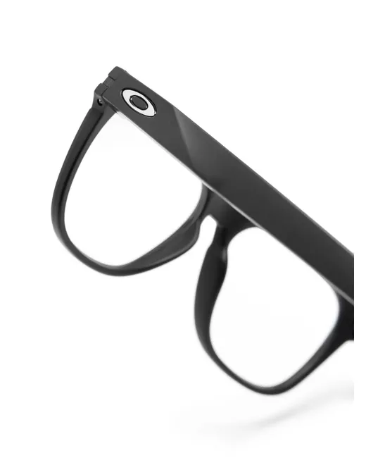 black acetate satin finish square frame clear lenses logo plaque at the arm straight arms straight tips All glasses from FARFETCH are sold as non-prescription frames. These glasses come with a protective case.