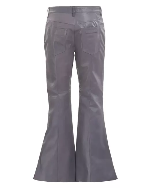 medium grey goatskin smooth grain low-rise concealed fly and button fastening belt loops flared classic five pockets