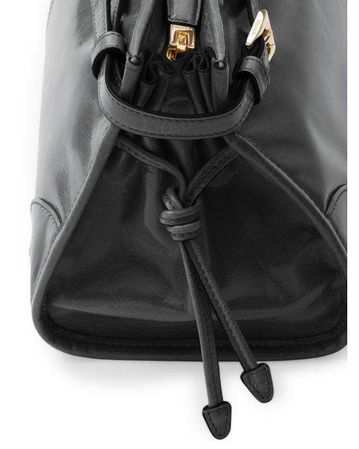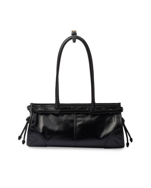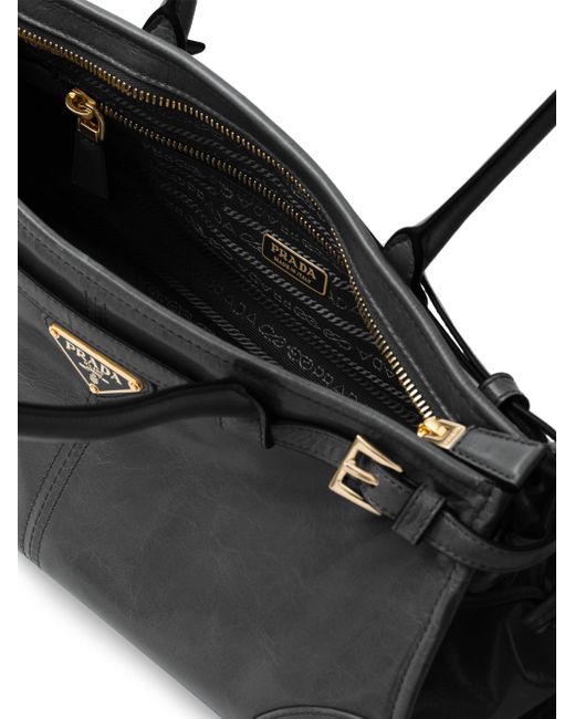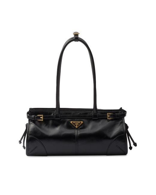 This pragmatic and refined handbag is made of soft leather with a glossy finish that emphasizes its versatile, modern allure. The geometric design blends different influences into one style with a distinctive but sleek aesthetic. Embellished by the sophisticated strap detail, the rectangular silhouette has zipper pockets inside. The enameled metal triangle logo completes the look with its iconic signature. Leather handles, 22 mm / 0.8'' drop detachable Adjustable shoulder strap Metal hardware Enameled metal triangle logo on the front Nappa and nylon interior with center zipper compartment and zipper patch pocket Made in Italy SIZE 12.5'' W x 6.1'' H x 4.7'' L. Lsd Handbags - Prada Handbags Access > Prada > Saks Fifth Avenue > Barneys. Prada. Color: Black.