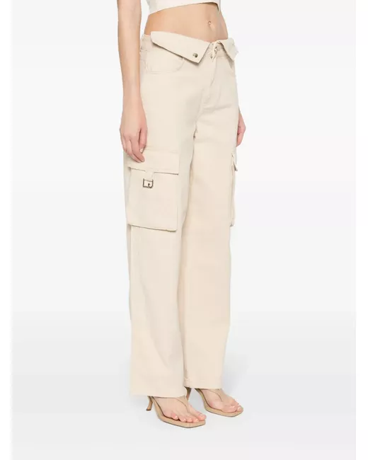 beige medio cotone tessuto in twill dettaglio con patta passanti due tasche laterali a filetto due tasche laterali con patta due tasche posteriori applicate vita alta taglio straight chiusura frontale con bottoni e zip