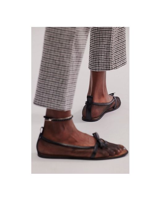 Classic with a cheeky twist, these mesh ballet flats are featured in a bold, sheer style with a sweet bow detail for a futuristic femme design. **Fit:** Relaxed, easy fit; these will not fit snug due to the nature of the mesh material. **Features:** Slip-on style, backless design, mesh uppers, unlined, round pointed toe, satiny trim, bow detail, flat sole **Why We Mesh Mania Bow Flats by FP Collection at Free People in Black Mesh, Size: US 6