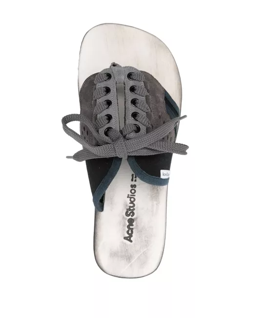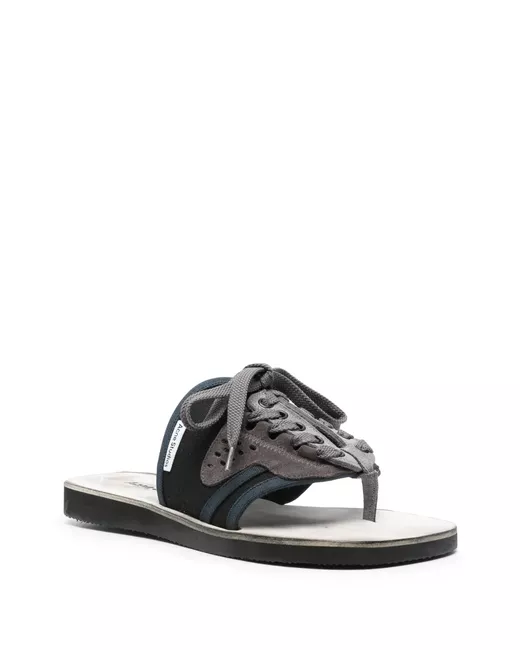 nero/grigio tela/pelle di vitello tela intrecciata pannelli in pelle scamosciata design a inserti con logo laterale logo sulla suola punta aperta fascia sull'alluce soletta in pelle con logo suola piatta in gomma chiusura frontale con lacci design slip-on