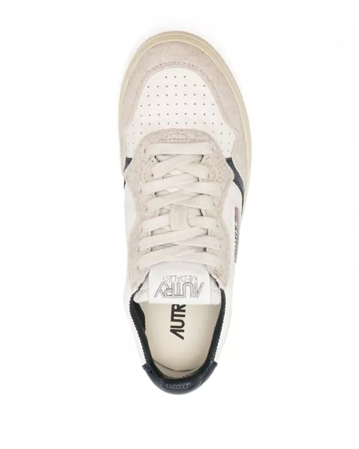 bianco opaco/grigio chiaro/blu navy design con inserti color block pelle scamosciata di vitello pelle di vitello effetto stropicciato punta tonda punta traforata linguetta con logo ricamato ricamo con logo cut-out rinforzo sul tallone a contrasto con logo imbottitura nella caviglia soletta in pelle con logo fodera in tessuto tecnico suola in gomma a contrasto chiusura frontale con lacci