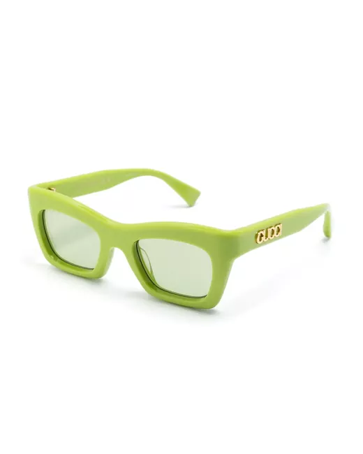 fern green acetate rectangle frame green tinted lenses UV-protective lenses logo-embossed arm sculpted arms curved tips These glasses come with a protective case.