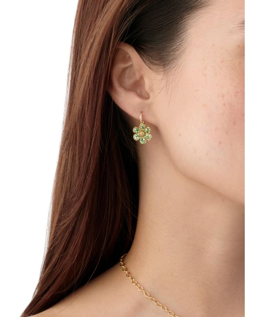 Crafted of 18K yellow gold, Temple St. Clair's mismatched earrings feature flower drops embellished with vibrant mixed gemstones. Diamonds, 0.06 tcw Pink sapphires Demantoids Rubies Blue and lavender sapphires Tsavorite garnets Paraiba tourmalines Spinels 18K yellow gold Leverback Imported SIZE About 0.5"W x 0.8"L. Fine Jewelry - Temple St Clair > Temple St. Clair > Saks Fifth Avenue > Barneys. Temple St. Clair. Color: Yellow Gold.