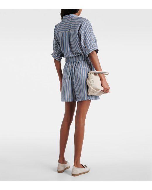 Materiale: 71% cotone, 29% seta. Trattamento: lavaggio a secco. Made in Italy. Colore del designer: AZZURRO/PANAMA/TABACCO. A righe. Fascia elastica in vita con coulisse. Vestibilità: a gamba larga. Tasche: tasche a fessura laterali e sul retro. Cotone.