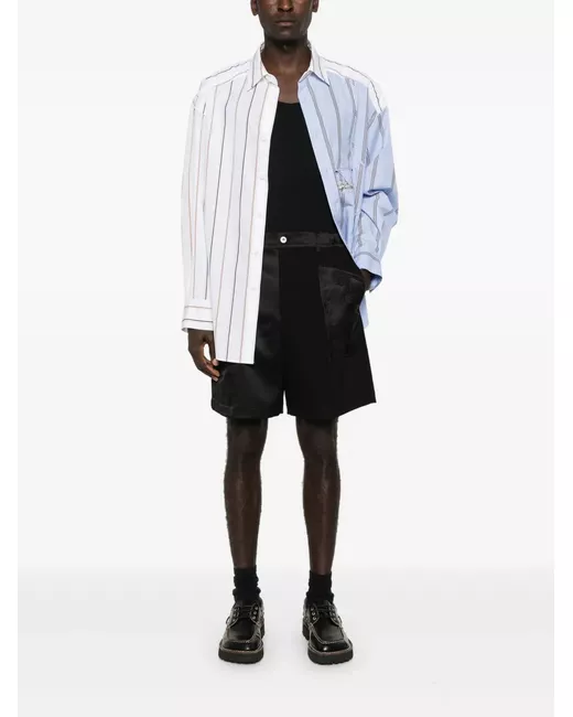 black patchwork design dragon-motif jacquard panelling belt loops two front pouch pockets rear welt pocket concealed fly and button fastening