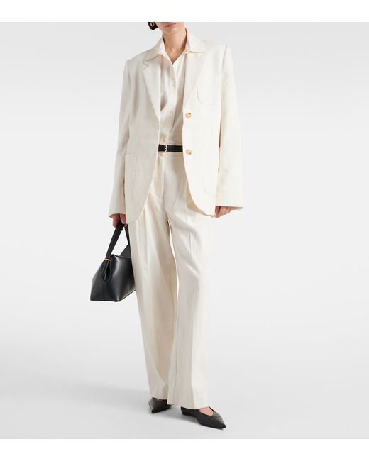 Materiale: 53% seta, 47% cotone. Trattamento: lavaggio a secco. Made in China. Colore del designer: Meringue. Chiusura: cerniera, bottone e barretta. Tasche: tasche a fessura laterali. Seta.