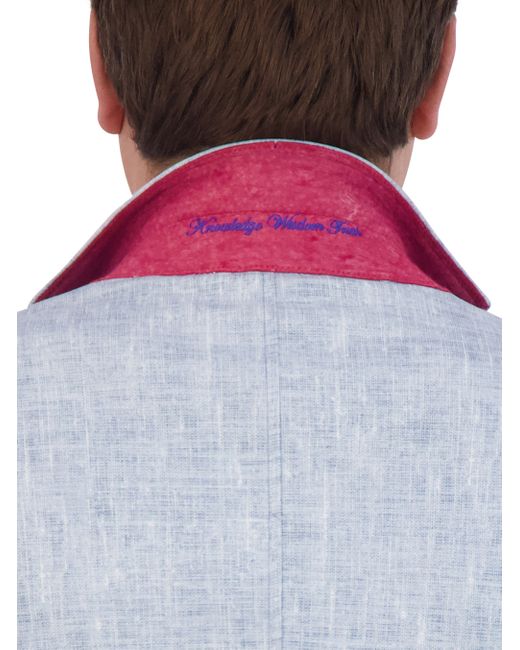 You'll love the ease of a simple, yet elegant heather knit blazer. Notice the notched lapel style with besom pockets and double rear vents. Have fun with color with the pull-out pocket square and by pairing with the coordinating Venlow tailored shirt. Knowledge Wisdom Truth signature embroidered under the collar for a special RG touch. Notched lapel with two button closure Long sleeve with lightly padded shoulder Two besom pockets at front Pull-out pocket square Unlined interior Contrast piping along interior Double rear side vents Knowledge Wisdom Truth embroidered under collar 65% polyester, 30% cotton, 5% EA Dry Clean Only Imported