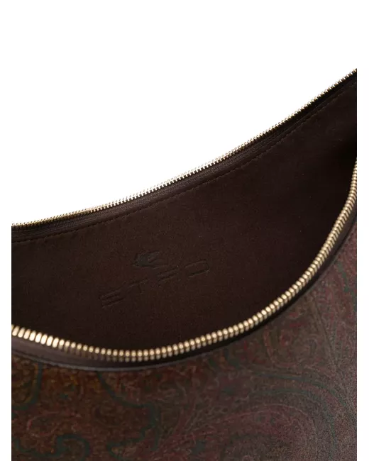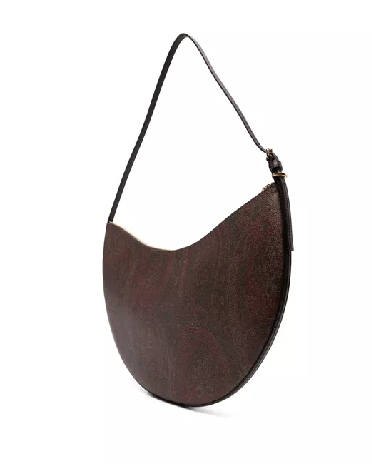 chocolate brown cotton blend canvas paisley-patterned jacquard coated finish adjustable shoulder strap main compartment debossed internal logo faux-leather lining gold-tone hardware top zip fastening This piece comes complete with a protective dust bag.