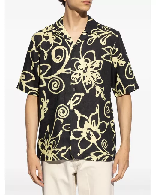 nero/multicolore lino/fibra di lino stampa con fiori all-over colletto alla cubana chiusura frontale con abbottonatura maniche corte orlo dritto