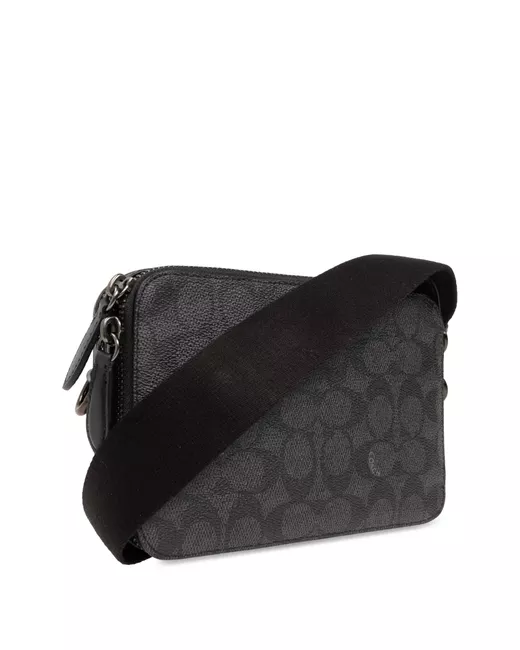 grigio antracite tela/pelle di vitello design con fascia singola chiusura con doppia zip fessure portacarte interne