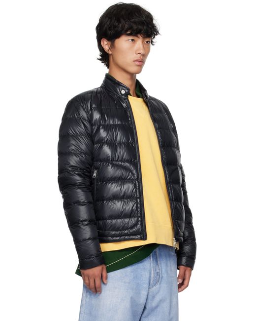 Packable DIST-certified down-filled quilted lightweight nylon longue saison jacket. · Press-stud fastening at band collar · Two-way zip closure · Zip pockets · Elasticized hem · Felted logo patch at sleeve · Adjustable press-stud tab at cuffs · Full quilted longue saison lining Supplier color: Obsidian blue Fill: 90% goose down, 10% feather.