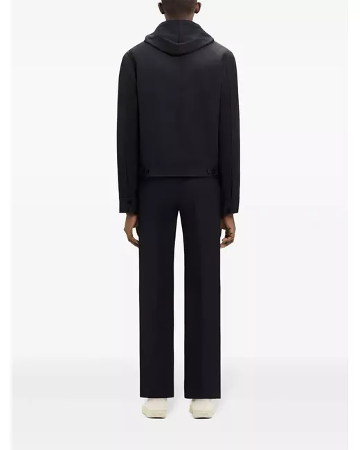 nero tessuto in twill colletto classico maniche lunghe con abbottonatura sui polsini applicazione con logo sul petto tasca con zip sul petto due tasche a filetto frontali orlo dritto chiusura frontale con zip a doppio cursore