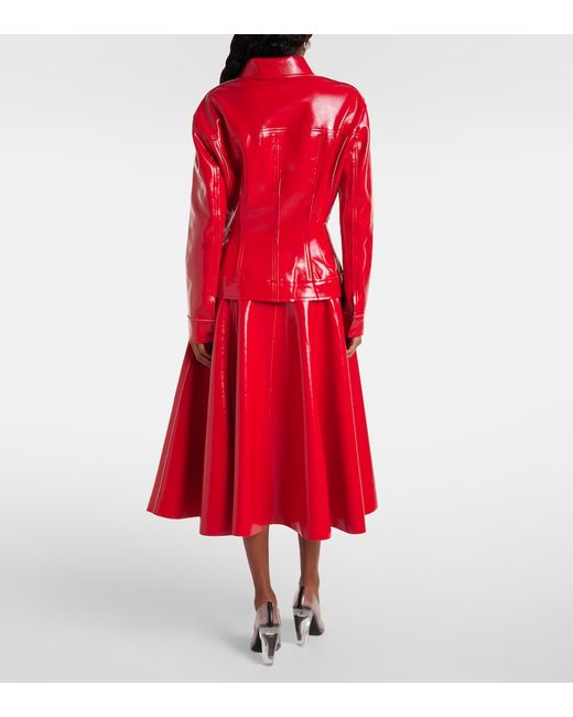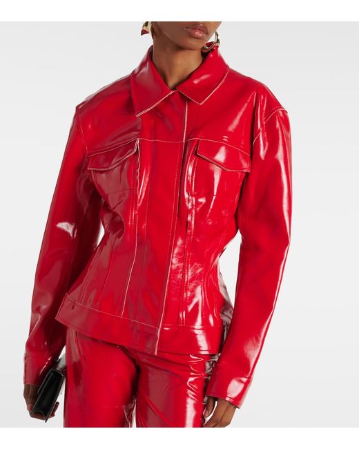Materiale: 100% poliuretano. Trattamento: non lavare in acqua. Made in China. Colore del designer: Tiger Red. Colore dell'articolo: rosso. Collo: classico (a punta). Tasche: tasche sul petto con patta. Chiusura: con zip frontale.