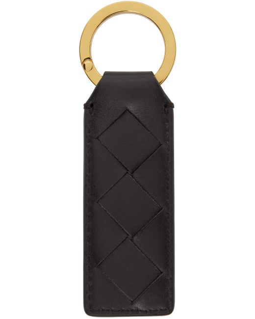 Intreccio-woven buffed calfskin keychain in black. · Logo-engraved keyring · Gold-tone hardware · H4.25 x W1.25 Supplier color: Fondant-m brass