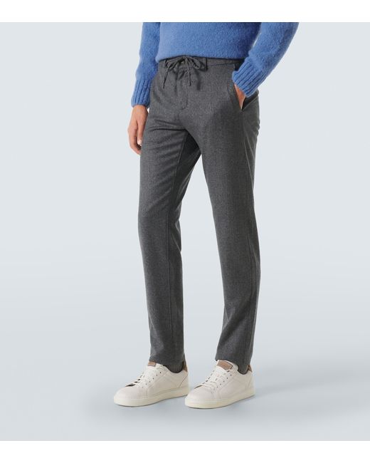 Material: 100% wool. Care instructions: machine wash at 30 degrees. Made in Italy. Designer color name: Grey. Closure: zipper fly, button fastening, drawstring. Pockets: side slit pockets, back pockets. Belt loops.