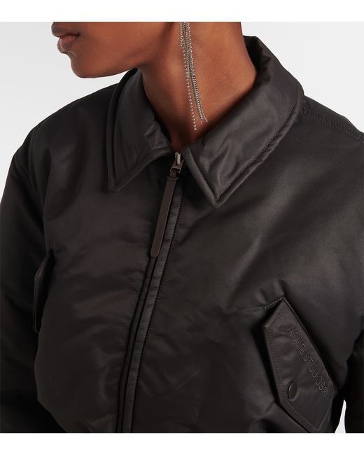 Material: 100% nylon. Care instructions: dry clean. Made in China. Designer color name: Anthracite Grey. Lining: 100% polyester. Filling: 100% polyester. Closure: two-way zipped front. Pockets: snap-buttoned pockets, sleeve pocket, internal pockets.