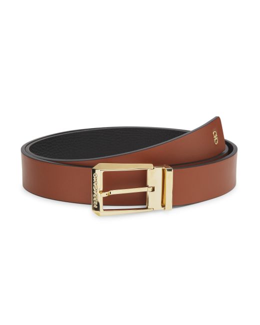 Crafted of smooth leather, this FERRAGAMO belt features an adjustable goldtone buckle. Adjustable, detachable buckle Goldtone hardware Leather Made in Italy SIZE About 3.2 cm (1.25'') W Cut-to-size length: about 100 cm (40'') Please note: The adjustable length allows for a more personalized fit and style. Easily cut the belt strap or punch another hole for a tighter or looser feel. To cut-to-fit, detach the buckle, cut to the desired length, and reattach the buckle. ABOUT THE BRAND Italian designer Salvatore Ferragamo began his journey in 1927 with a vision of creating the world's most beautiful shoes. The label expanded to menswear in the 1970s, and remains famed for its made-in-Italy pieces. The craftsmanship inherent in its shoes is also found in accessories like sunglasses, belts and ties. The brand's signature Gancini logo-a backwards horseshoe-can be found on its classic loafers and fine leather goods. Men Accessories - Classic Accessories > Ferragamo > Saks Fifth Avenue > Barneys. FERRAGAMO. Color: New Cognac Nero.