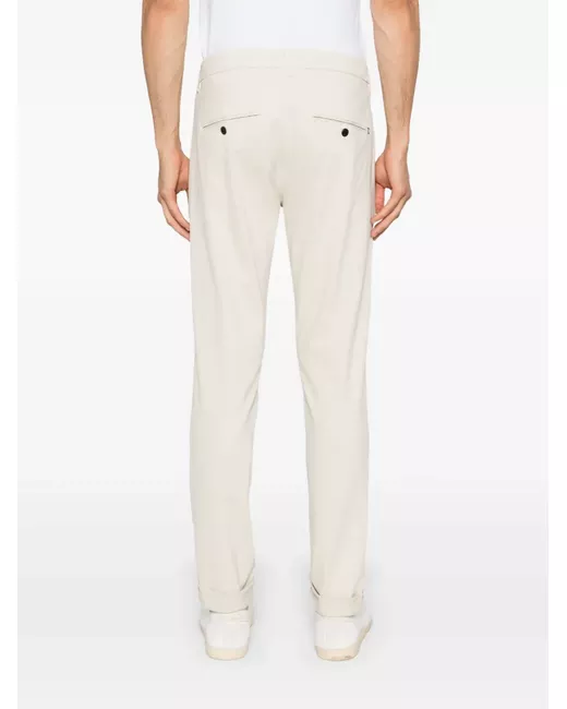 light beige stretch-cotton twill weave belt loops two diagonal pockets to the sides two rear button-fastening jetted pockets turn-up ankles concealed fly and button fastening