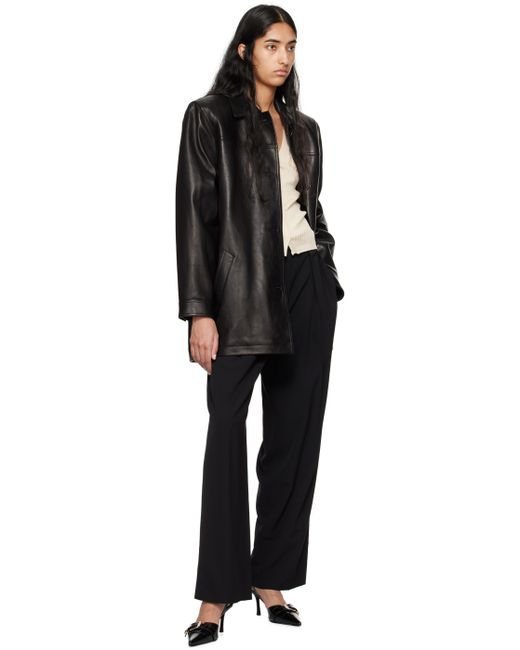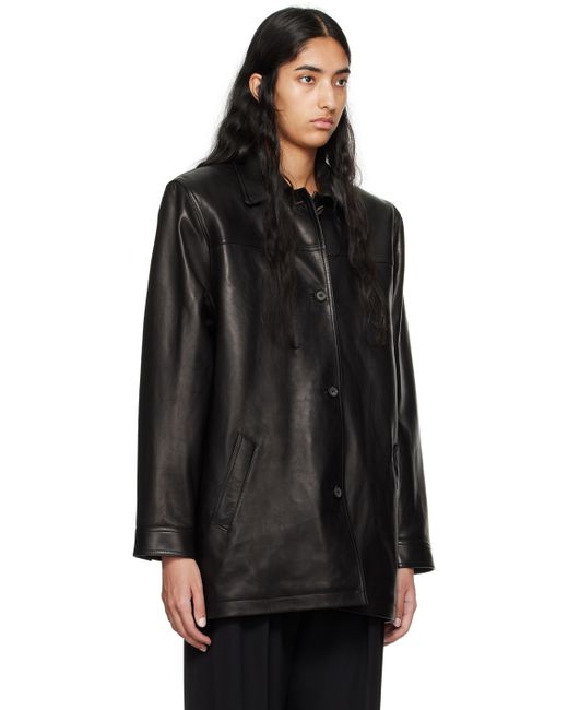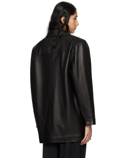 Oversized Button Up Leather Jacket da Women di colore Nero
