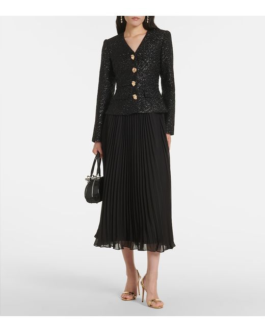 Materiale: 72% poliestere, 23% filato metallizzato, 3% viscosa, 2% lana. Trattamento: lavaggio a secco. Made in China. Colore del designer: Ivory Glow. Fodera: 100% poliestere. Fodera II: 100% poliestere. Materiale II: 100% poliestere. Chiusura: abbottonatura frontale parziale, cerniera laterale.