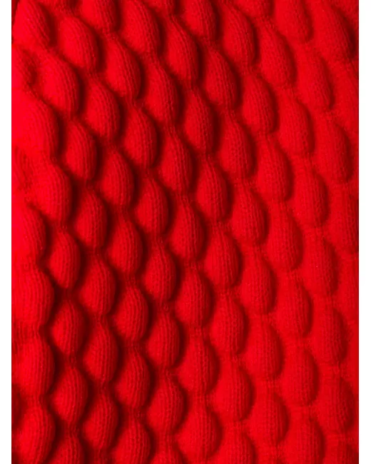 rosso scarlatto poliammide riciclato maglia chunky finitura in rilievo design a inserti orlo rifinito corona rotonda design pull on Questo articolo è realizzato almeno per il 50% con materiali riciclati ^ .