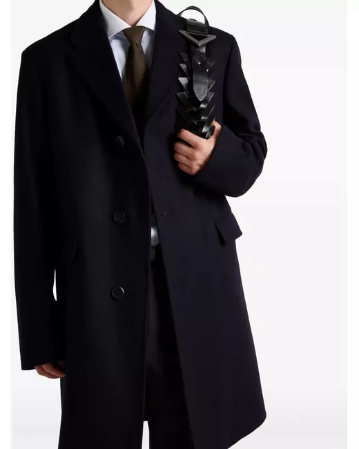 blu navy lana revers classici spacco centrale sul retro chiusura a bottoni due tasche laterali con patta logo a triangolo maniche lunghe orlo dritto