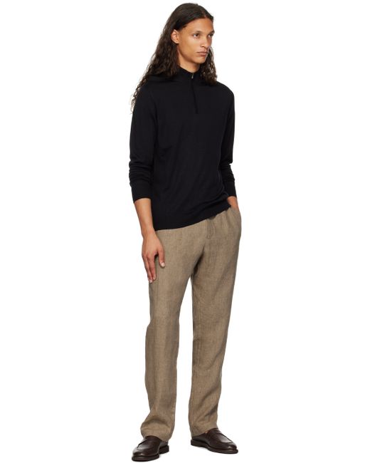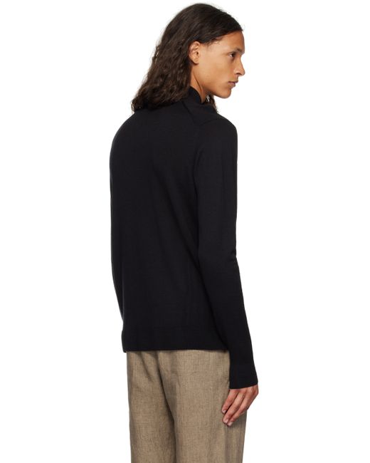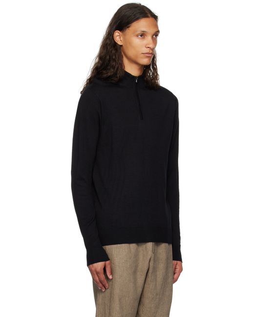 Lightweight knit merino wool sweater. · Rib knit stand collar, hem, and cuffs · Half-zip closure Supplier color: Black