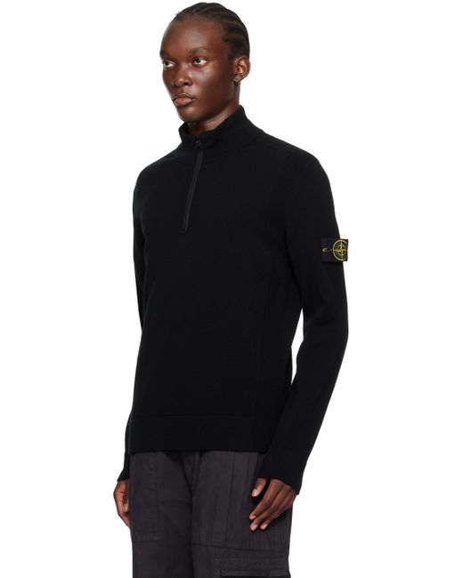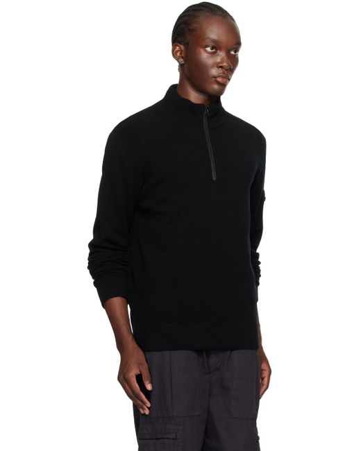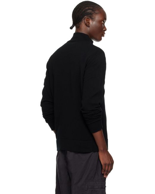 Knit virgin wool-blend sweater. · Rib knit stand collar, hem, and cuffs · Half-zip closure · Detachable felted logo patch at sleeve Supplier color: Black Supplier code: 8115521A1
