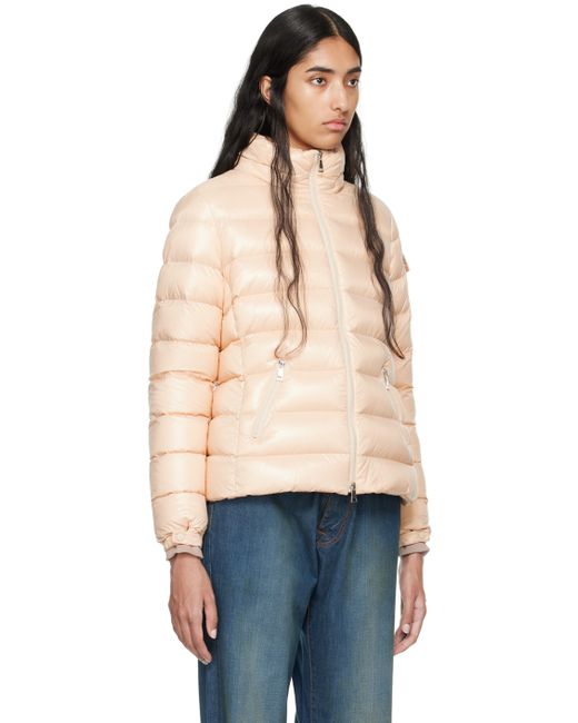 Down-filled quilted nylon laqué jacket. · Detachable faux-fur trim at detachable hood · Stand collar · Two-way zip closure · Zip pockets · Patch pocket and tricolor felted logo patch at sleeve · Press-stud fastening at elasticated cuffs · Full nylon laqué lining Supplier color: Pink Fill: 90% down, 10% feather.