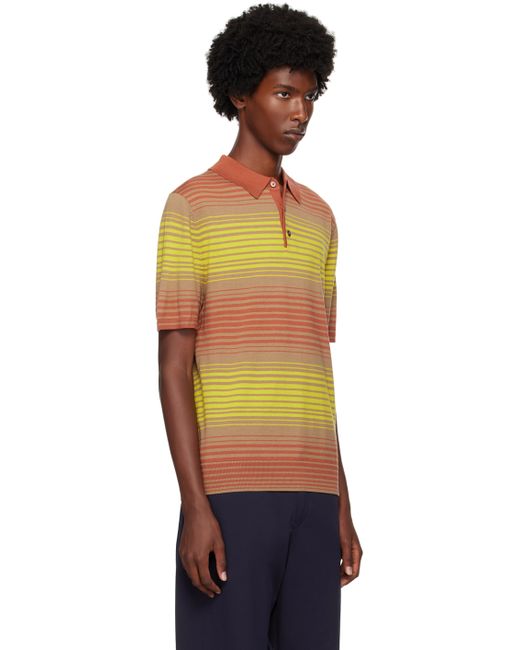 Knit merino wool polo. Jacquard stripes throughout. · Spread collar · Three-button placket · Logo embroidered at hem · Dropped shoulders Supplier color: Reds