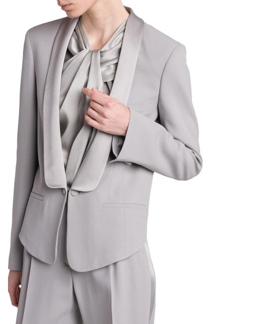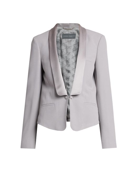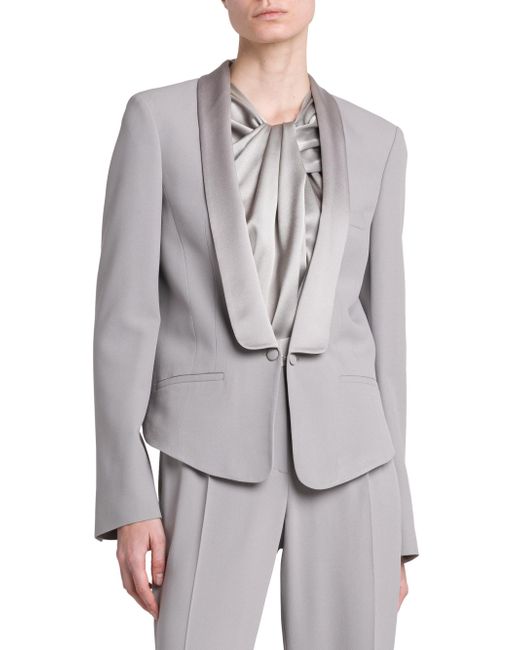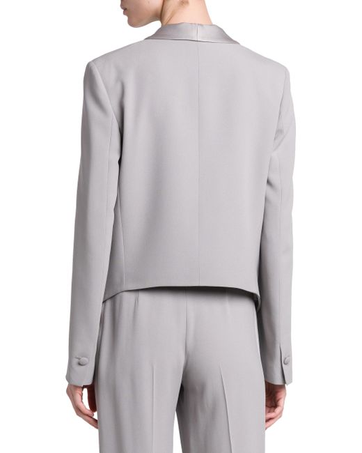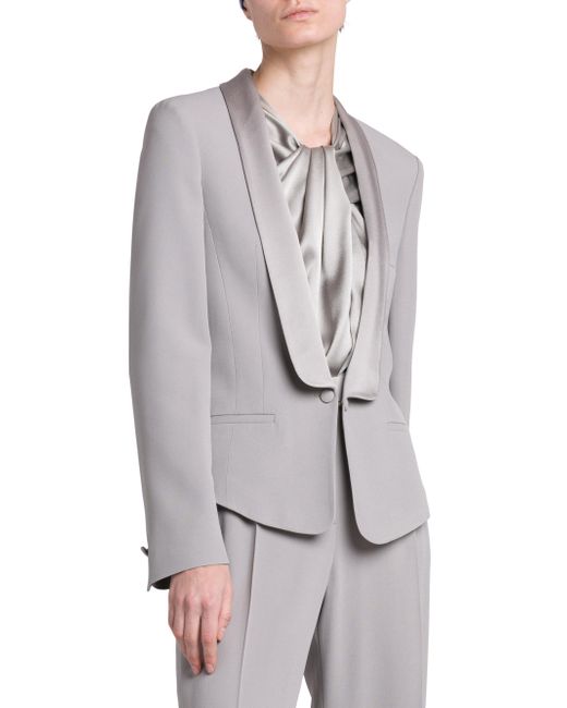 Cut for a slightly cropped fit, this Alberta Ferretti jacket features a vintage menswear-inspired design with satin shawl lapels. Shawl lapels Long sleeves Welt pockets Button closure 74% acetate/26% viscose Dry clean Made in Italy SIZE & FIT Model measurements: 5'10" tall Model is wearing a US size 4. Designer Evening - G24 Consignment > Alberta Ferretti > Saks Fifth Avenue > Barneys. Alberta Ferretti. Color: Grey. Size: 4.